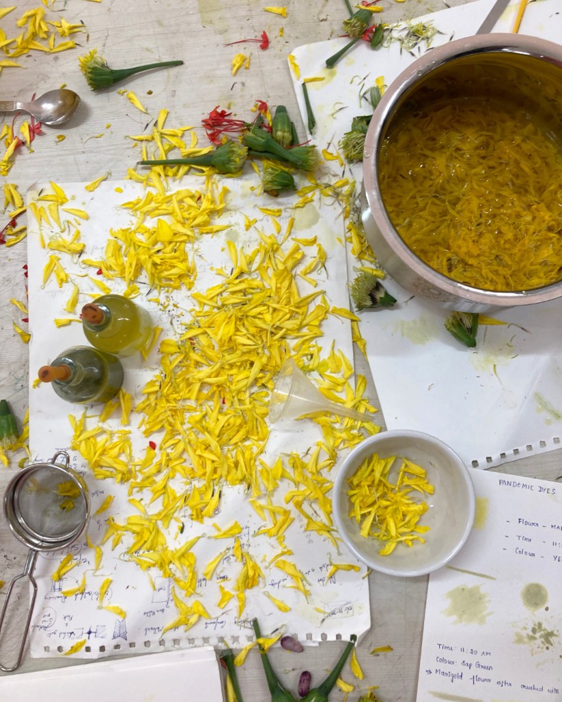 It was a five-day colour making journey, that was also an experience in learning and appreciating new things. For the participants, it was about the endless possibilities of making colours from natural sources. The proof of this was in the variety of colours they extracted from plants around them, and then made artworks with it all. For me, it was another opportunity to witness the innate human want (and possibly the need) to create and make, amidst keeping routines and chasing deadlines. The participants made visible their curiosity about this new topic and their enthusiasm towards explorations, every single day, up till the final day of display.
