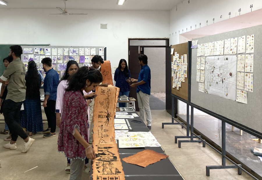 These various ways of extracting colour and using them to paint led us all towards a final project. I set an open-ended brief of this last assignment. It required the participants to make their own colours (inks or pigments) and decide for themselves how they would apply those to create visual works. The two constraints were to use natural sources of colour, and to ensure that the final output was their your own original thought or concept (not one borrowed from Instagram or Pinterest). All this culminated in an open house display of the entire week’s work.