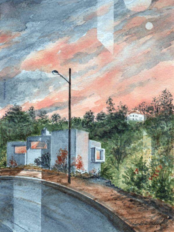 A collection of landscape compositions that started as explorations in painting recognisable forms and scapes using natural dyes, while in California. Painted predominantly using dyes extracted from Black beans, Indigo (blues), Spinach, Hibiscus (greens), Rosewater (pink-purple), Madder and Avocados (reds, browns), these are views of Los Angeles. These have progressed to become detailed landscape paintings, in India.